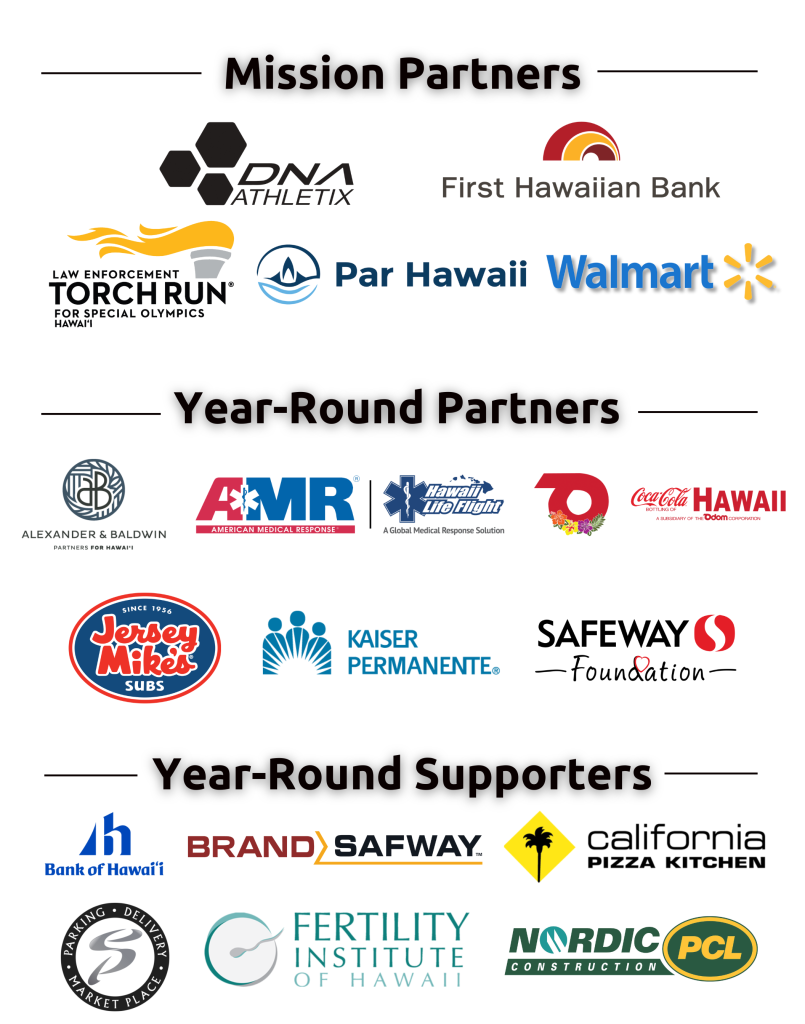 Corporate partnerships ensure Special Olympics Hawai`i can continue to provide year-round sports training, competitions, and health programs to children and adults with intellectual disabilities. Special Olympics is making an impact in the lives of our athletes, their families, and our community. By partnering with Special Olympics Hawai`i, your company will be associated with one of the most established, recognized, respected and trusted brands in the world. But the true value of a partnership goes far beyond logos, social media posts and banners. Your support will be seen on the softball fields, basketball courts and soccer fields and it will be felt in the hearts and homes of those we serve every day!