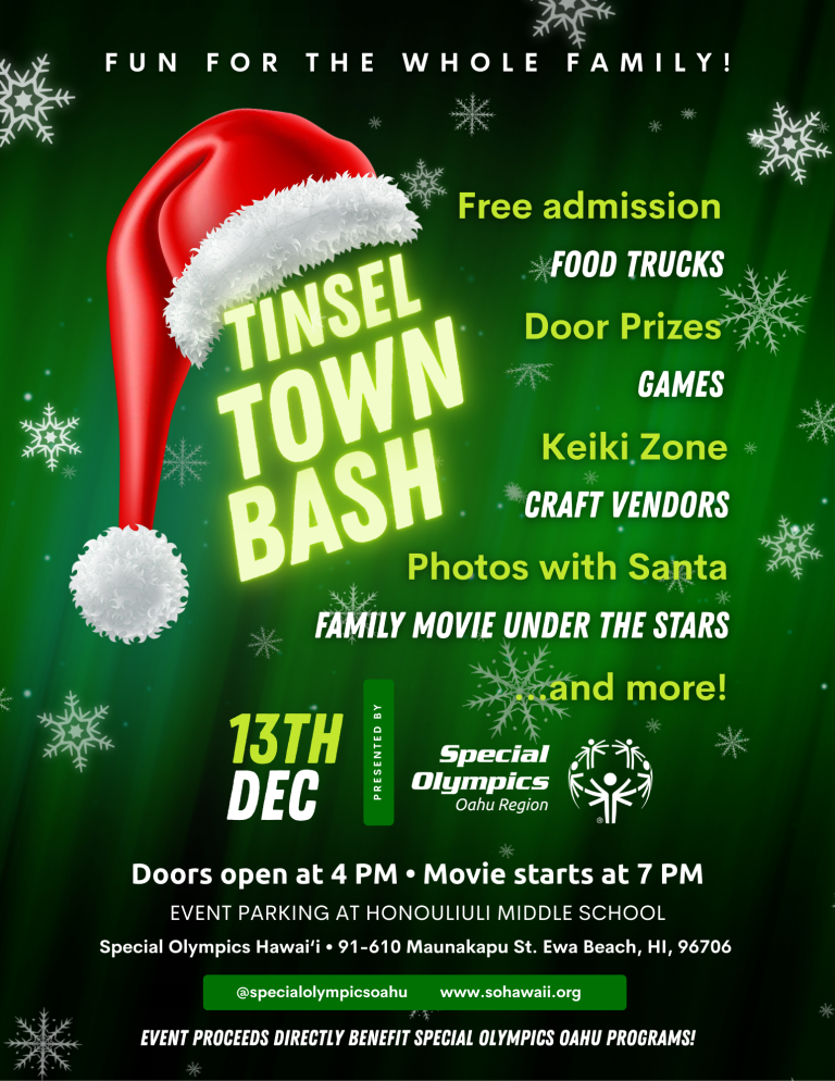 Come for the food and fun, stay for the movie and memories, and give the gift of joy to Special Olympics Oahu athletes this holiday season!